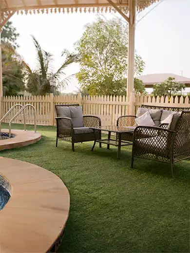 Palm Escape is where laughter fills the air, music sets the tone, and time slips away in good company. Surrounded by lush greenery, the farmhouse blends open spaces with cozy corners, creating a home-away-from-home atmosphere.